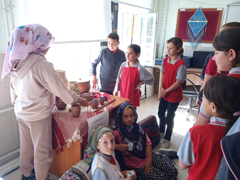 Okulumuz da Sosyal Bilgiler Öğretmenimiz Gülseda BİTİRİR rehberliğinde öğrencilerimiz tarafından "Milli Kültür Öğelerimiz Sergisi" gerçekleştirildi. Yöremize ait eserler öğrencilerimiz tarafından sergilendi ve geçmişten geleceğe aktarılan değerlerimiz için öğrencilerimizde farkındalık oluşturuldu. Okul Müdürümüz Sn. Selçuk ÖZTÜRK Milli Kültür Öğelerimizin bizlerin gelecek nesillere bıraktığı birer miras olduğunu ve Türkiye Yüzyılı Maarif Modelinde de önemli yere sahip olan Milli Değerlerimizin köklerimizden alınıp gelecek nesillere aktarılmasının bizlerin en önemli görevleri arasında olduğunu belirtti.